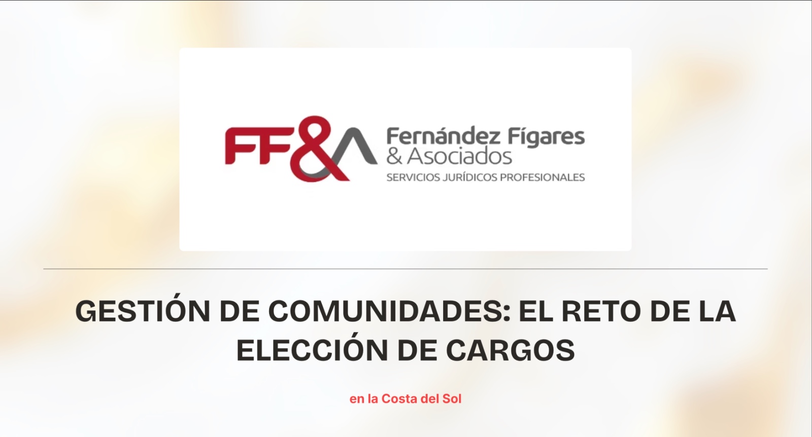 Fernández- Fígares & Asociados incorpora un nuevo departamento inmobiliario para ofrecer un servicio integral a sus clientes Estepona, 14 de abril de 2026 – Fernández-Fígares & Asociados, despacho de referencia en la administración de fincas y asesoramiento jurídico,
